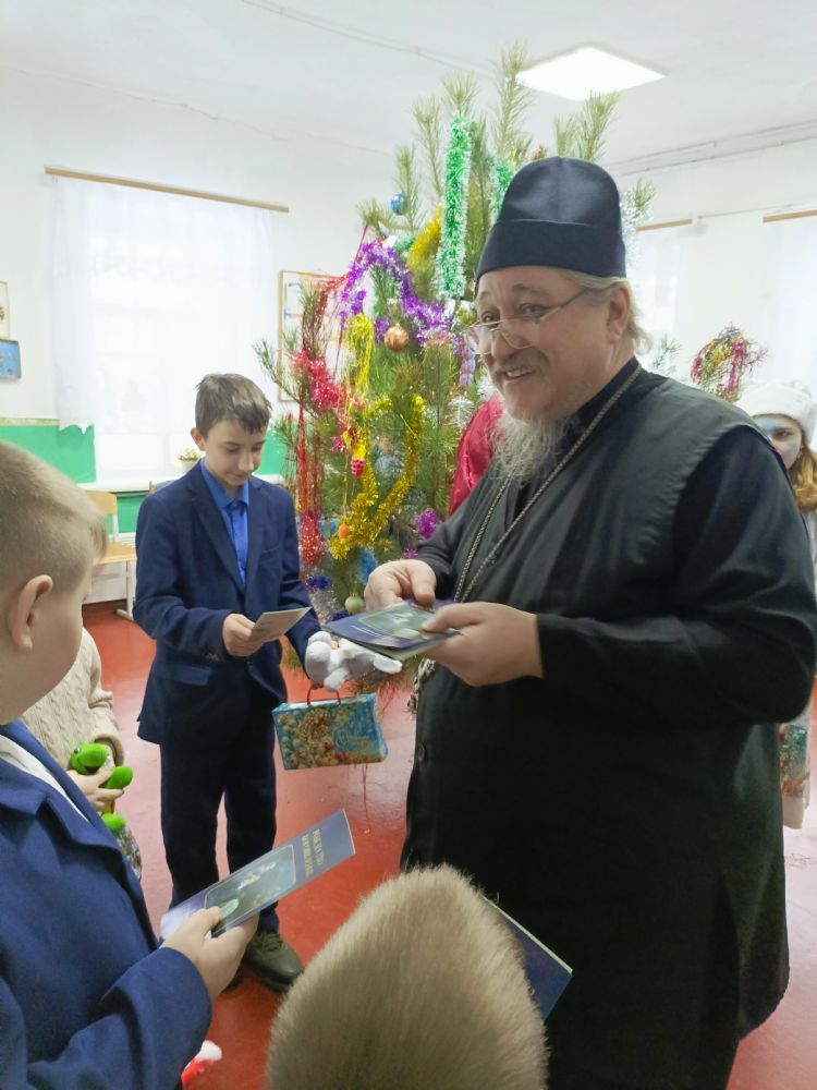 выступил на тему праздника Рождества Христво, рассказал и раскрыл смысл прихода Христа младенца. В завершении утренника, Батюшка