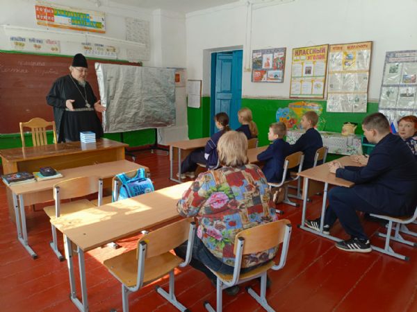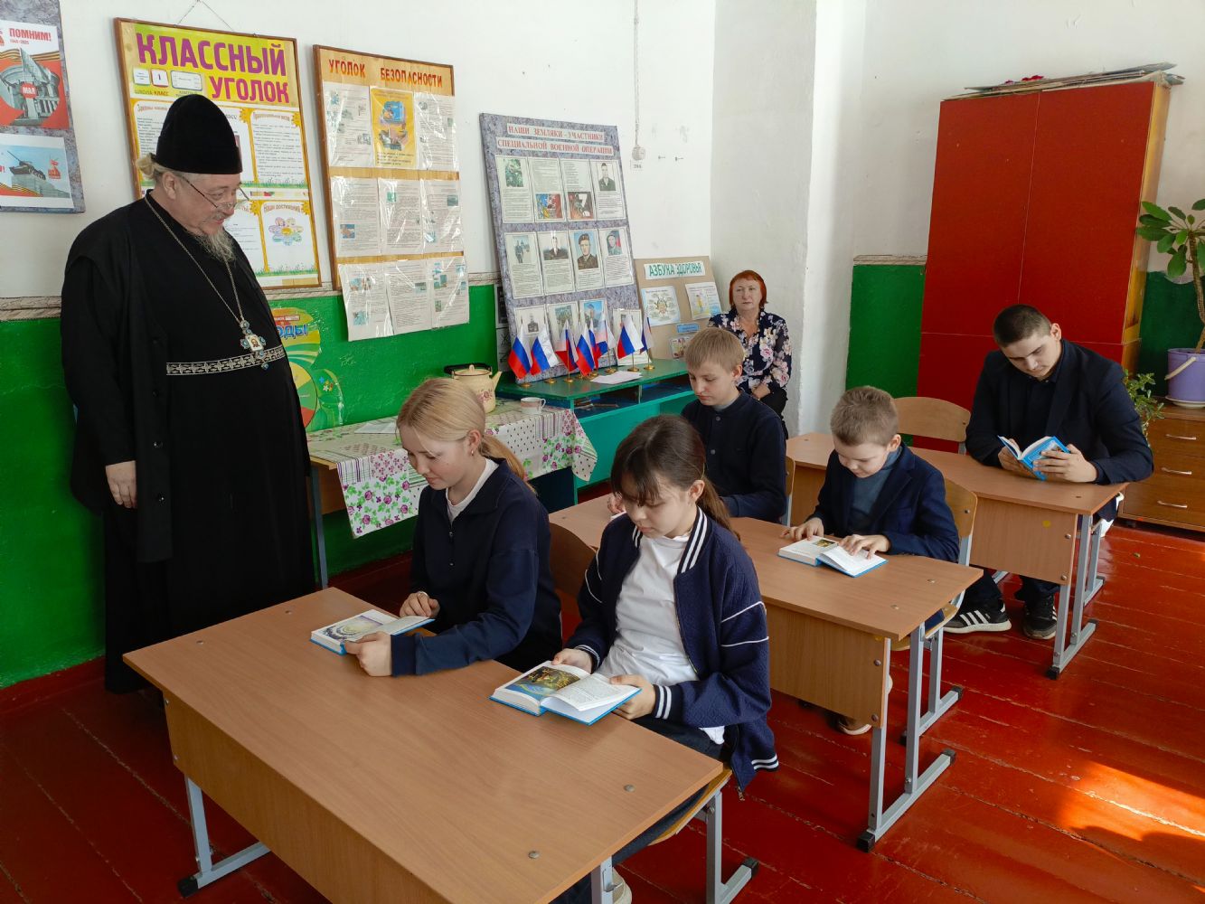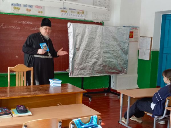 Священник подарил учащимся замечательную книгу «Детская библия». Эта книга несет Слово Божие, рассказывает о происхождении мира, человека и смысле бытия. Она знакомит с жизнью и делами библейских царей и пророков, воинов и мыслителей; поведает о земной жизни Иисуса Христа. Ветхий и Новый Заветы – источники христианской веры. Детская Библия содержит знания, опыт и дает каждому человеку духовное богатство.