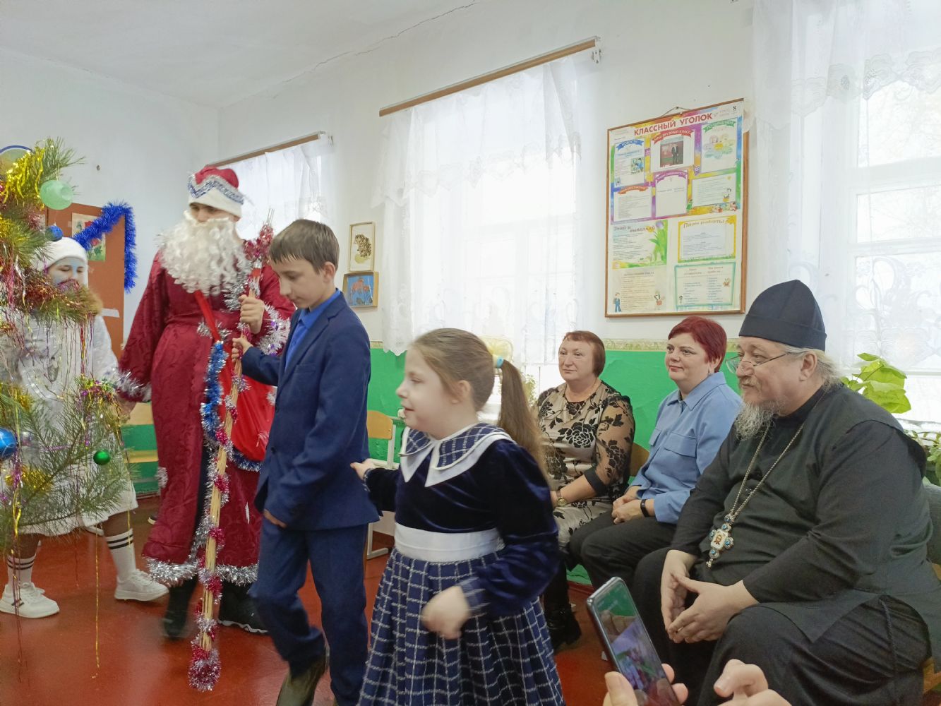выступил на тему праздника Рождества Христво, рассказал и раскрыл смысл прихода Христа младенца. В завершении утренника, Батюшка