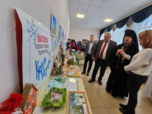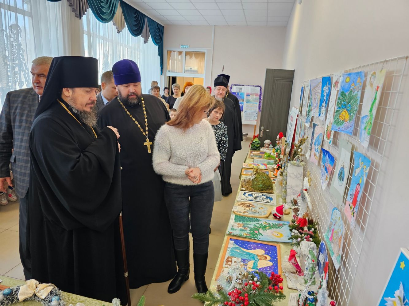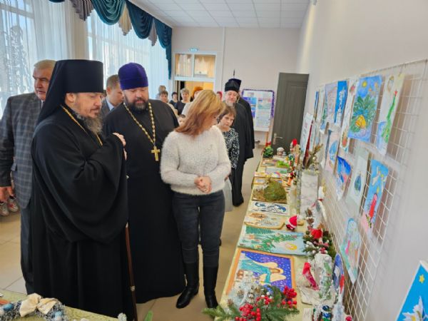 Перед началом торжества епископ Нектарий в сопровождении духовенства осмотрел выставку детских творческих работ «Красота Рождества», размещённую в фойе. Архипастыря сопровождали благочинный Малоархангельского благочиния протоиерей Николай Гонтар, настоятель храма Покрова Пресвятой Богородицы села Архарово иеромонах Ефрем (Босых) и настоятель храма святых бессребреников Космы и Дамиана села Луковец иерей Алексий Некрасов.