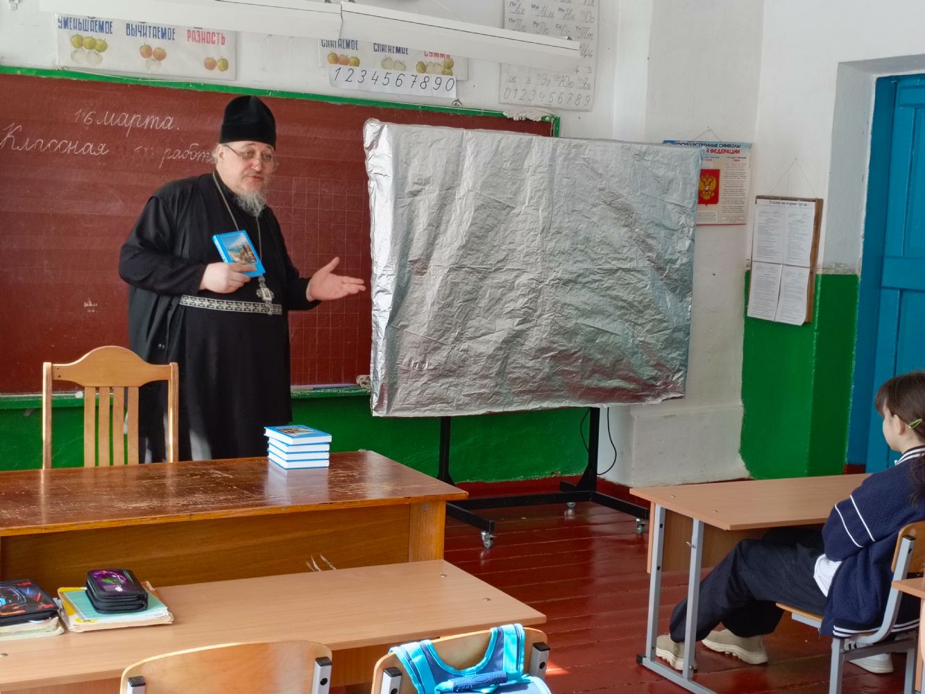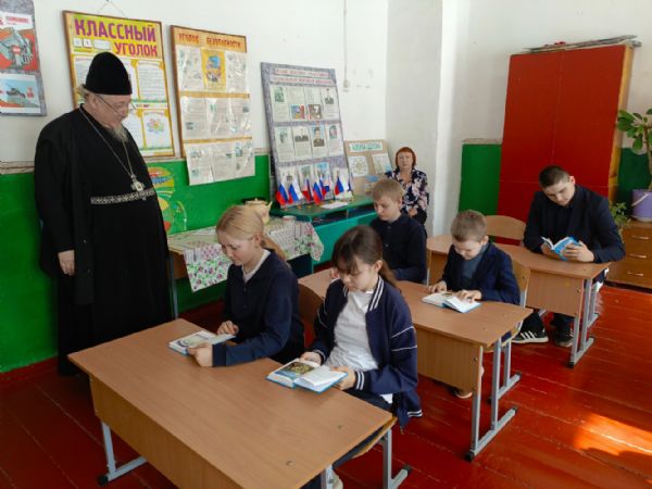 Священник подарил учащимся замечательную книгу «Детская библия». Эта книга несет Слово Божие, рассказывает о происхождении мира, человека и смысле бытия. Она знакомит с жизнью и делами библейских царей и пророков, воинов и мыслителей; поведает о земной жизни Иисуса Христа. Ветхий и Новый Заветы – источники христианской веры. Детская Библия содержит знания, опыт и дает каждому человеку духовное богатство.